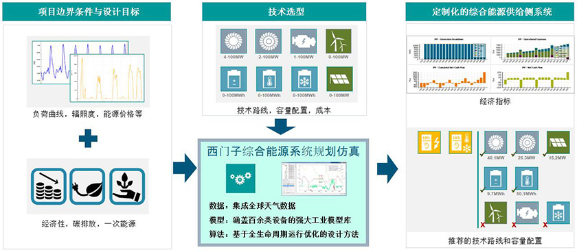 针对具体项目,设计人员可通过对项目所在地的资源禀赋、大宗商品价格、负荷种类及需求、天气环境数据、用户需求等进行充分调研,确定项目边界条件并基于一定的规划设计目标,模拟仿真得出全生命周期的投资回报比,同时也可以优化设计得到适合具体项目的技术选型,设备容量等参数。